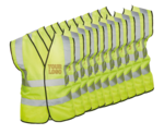 1 Pack of 100 Hi Viz Vests including print to either the front or the back as a single colour transfer.